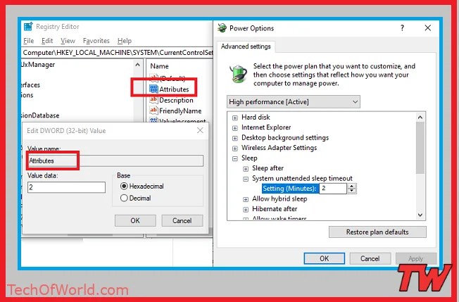 Change the value of the “Attributes” key from 1 to 2. This will enable the System unattended sleep timeout in the Power Options.